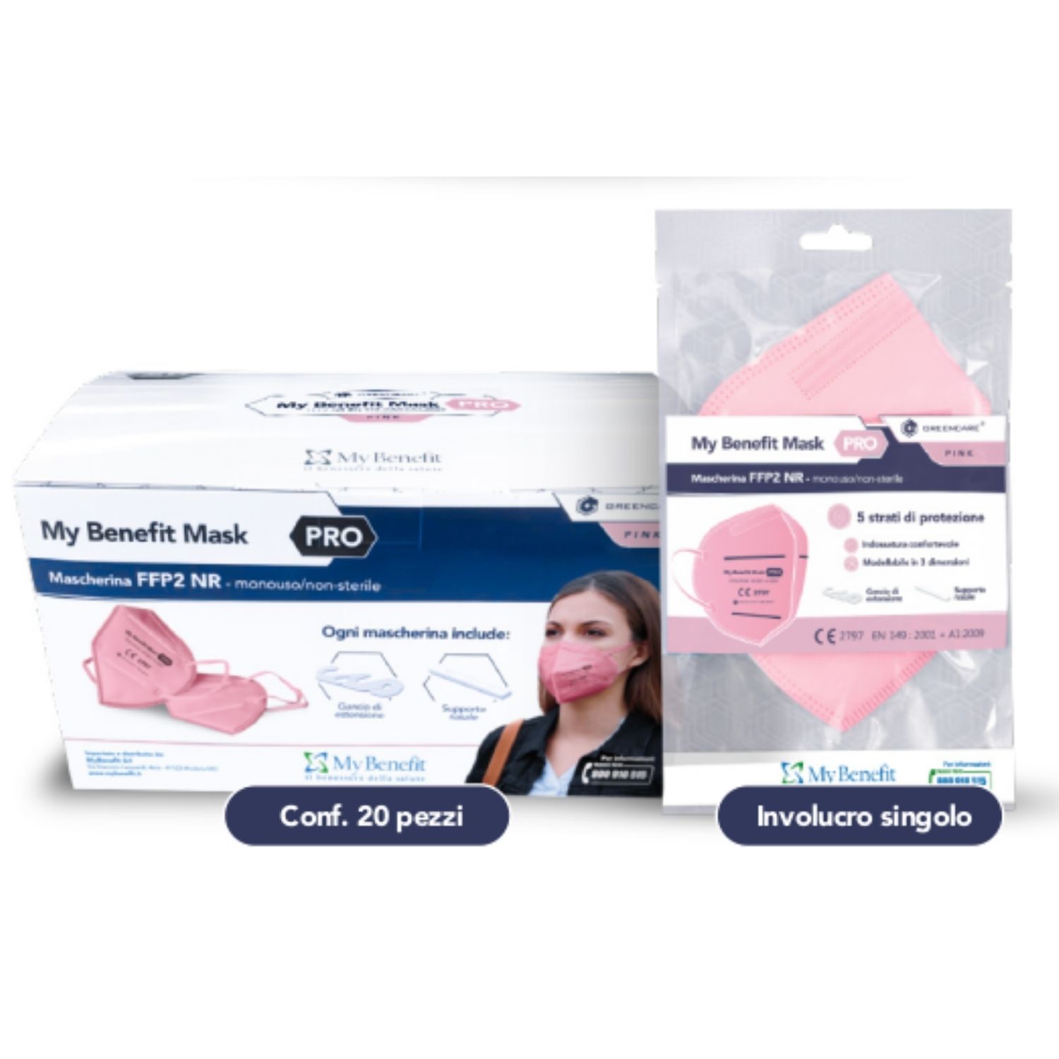 Mascherine FFP2 CE 2797 con Gancio e stringinaso imbottito Rosa GREENCARE