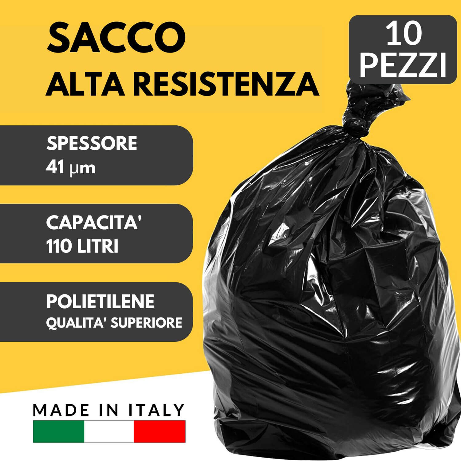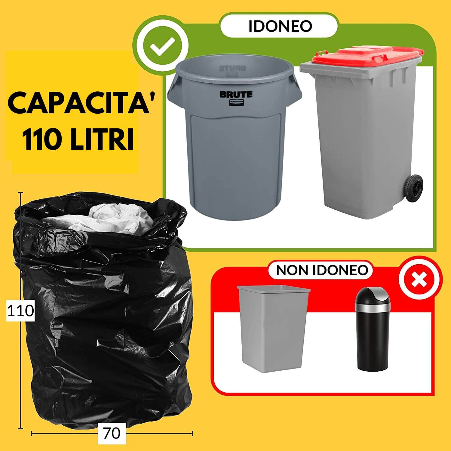 MATERIALI – i sacchetti neri 70x110cm sono un prodotto “Made in Italy”, formati da materiale in LPDE di polietilene. Tale materiale permette ai sacchi di essere riciclabili ed elastici, non si lacerano facilmente con materiali appuntiti o taglienti così da non avere più problemi di rottura degli stessi durante il trasporto dei tuoi rifiuti;