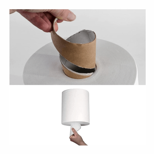 Rotolo che si può utilizzare come un comune Scottex oppure estraendo l’anima centrale i fogli si strappano singolarmente ed il rotolo rimane protetto nella sua confezione originale